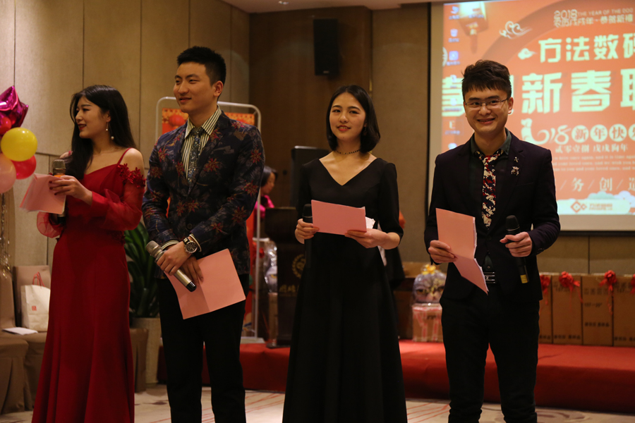 中午的午餐,大家推杯換盞,開懷暢飲,共話新年。伴隨著歡快的歌舞,2018年方法數(shù)碼迎新聯(lián)歡會也正式拉開了序幕。多才多藝的方法人,給我們展現(xiàn)了一場場別開生面的表演,歌曲、舞蹈、小品等形式多樣的文藝節(jié)目,場場都獲得滿堂喝彩,掌聲不斷。