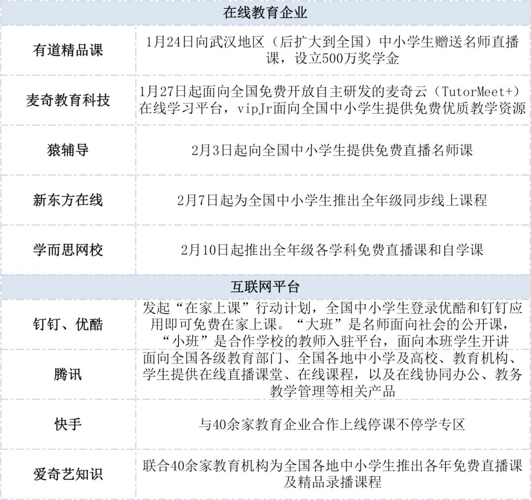 疫情期間在線教育相關(guān)企業(yè)推出的服務(wù)
