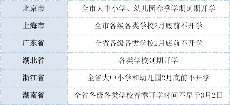 部分省市推遲開(kāi)學(xué)時(shí)間