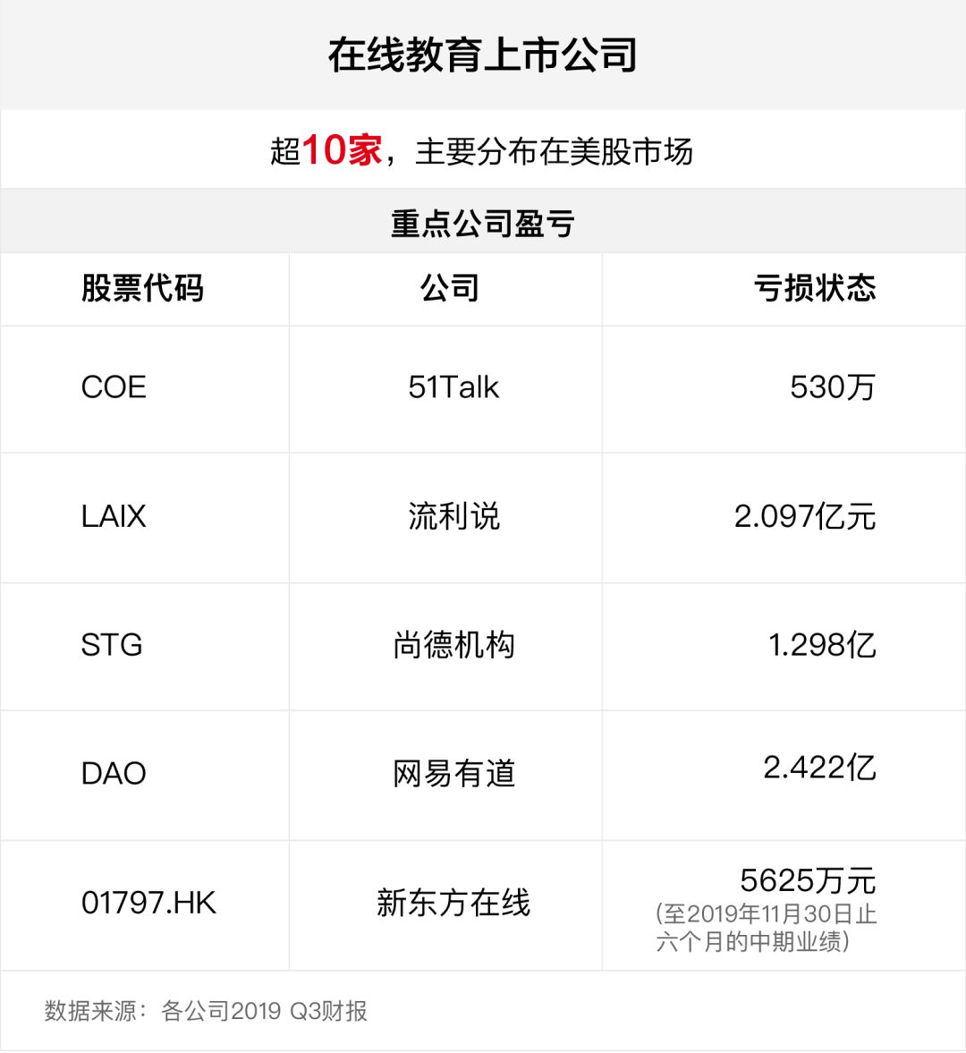 記者注意到,目前成功上市的網(wǎng)絡(luò)教育公司有10多家,大部分集中在美國(guó)股市。根據(jù)已公布的2019年第三季度財(cái)報(bào)顯示,流利談話、51Talk、尚德、新東方在線等知名公司均出現(xiàn)不同程度的虧損。